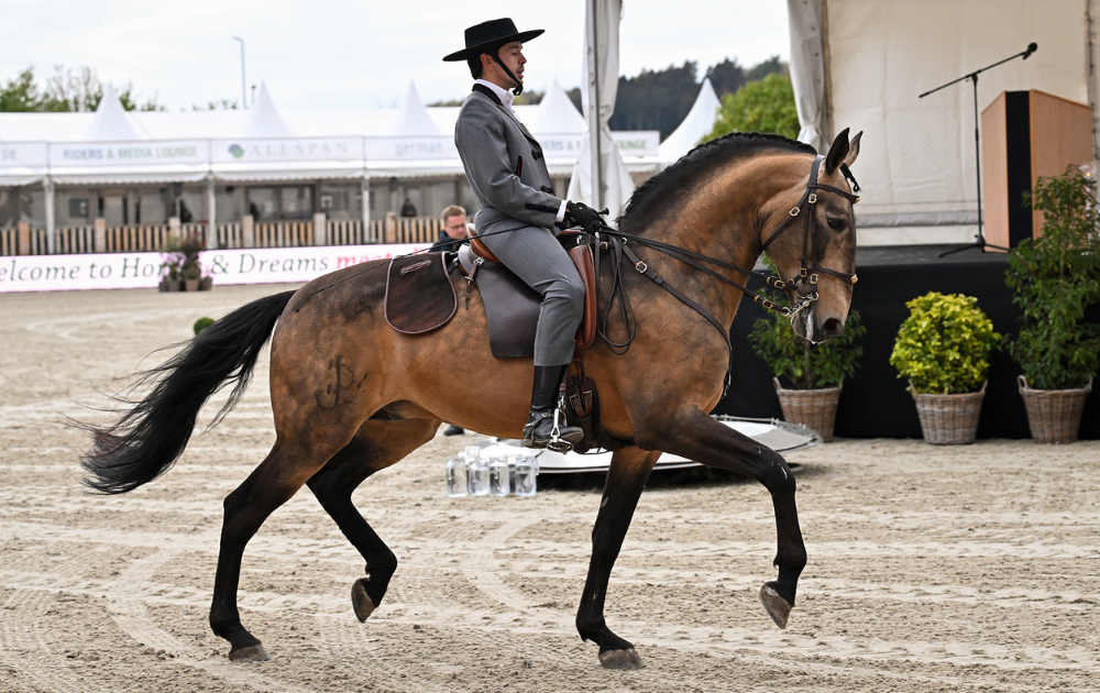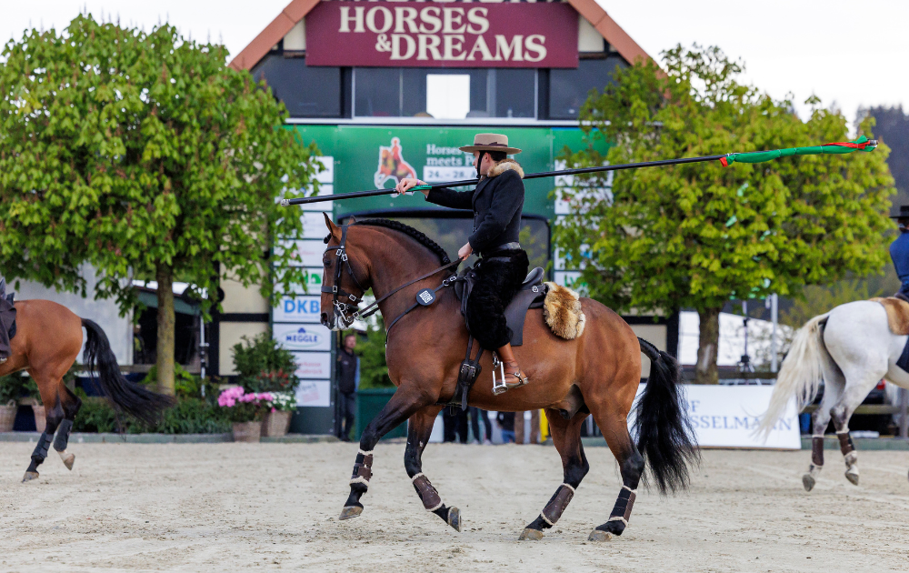 Wer wollte nicht schon mal das portugiesische Flair eigens erleben? Bei „Horses and Dreams“ war dies 2024 möglich. So konnten sich die Besucher und Reiter nicht nur von portugiesischen Köstlichkeiten verwöhnen lassen sondern auch in der Ausstellung und der Abendshow mehr über die Kultur lernen. So kamen groß und klein nicht mehr aus dem Staunen als Lisa Röckner mit Ihren Pferden ohne Zäumung über den Platz galoppierte. Während unter tosenden Applaus die Vorstellung der Working Equitation für Gänsehaut sorgte. Doch auch die jüngsten Vierbeiner konnten bei Ihrem großen Auftritt bei der ersten Oldenburger Elite Fohlen Auktion bei „Horses and Dreams“ von sich überzeugen. War man nicht an irgendeinen Stand im portugiesischen Viertel hängen geblieben so konnte man sich die miteinander messende Reitsportelite im großen Dressurstadion und auf dem Hauptplatz im Springen anschauen und anfeuern.