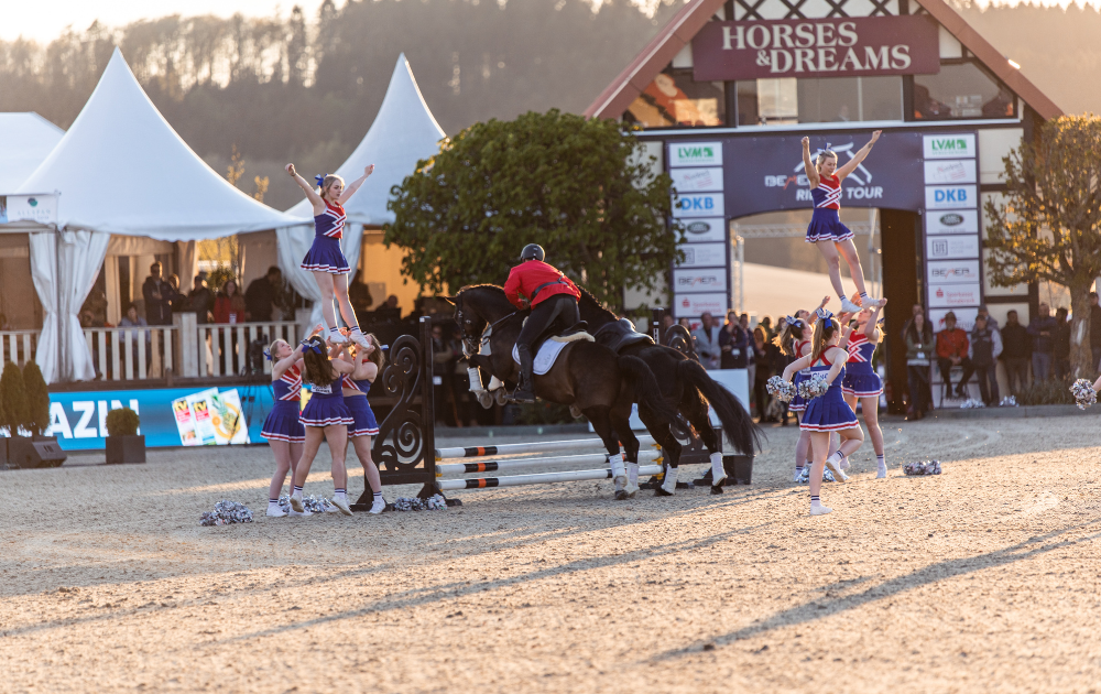 Der Start und das große Finale der BEMER Tour zogen zahlreiche Besucher an. Musikalische Highlights lieferten kanadische Künstler wie Greenbeats und die Band Foundling. Mitreißende Performances der Cheerleader und die spektakuläre Grand Prix Kür unter Flutlicht rundeten das Event eindrucksvoll ab.